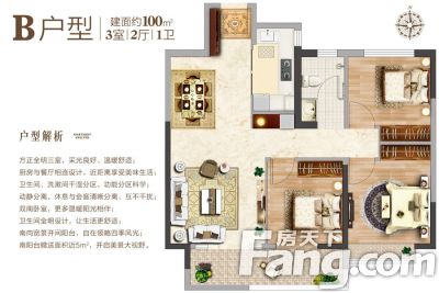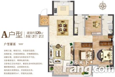 户型齐全,主打南北通透,全明格局,三开间朝南,大面宽阳台三居