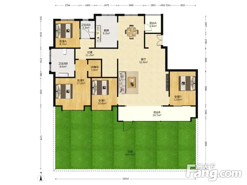 *获取完整户型报告,同时会有免费语音讲解服务