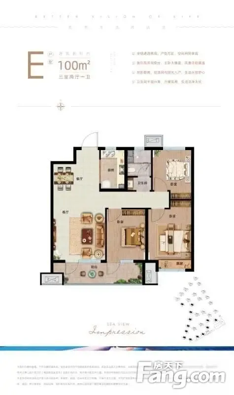 鲁商金茂观海印象户型主要有100平-125平的南北通透,户型方正的三居 、140平-140平的南北通透,全明格局,户型方正的四居 。