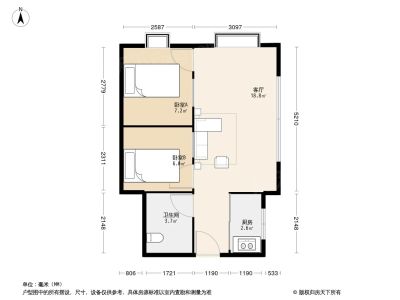 美航花园 2室1厅 北