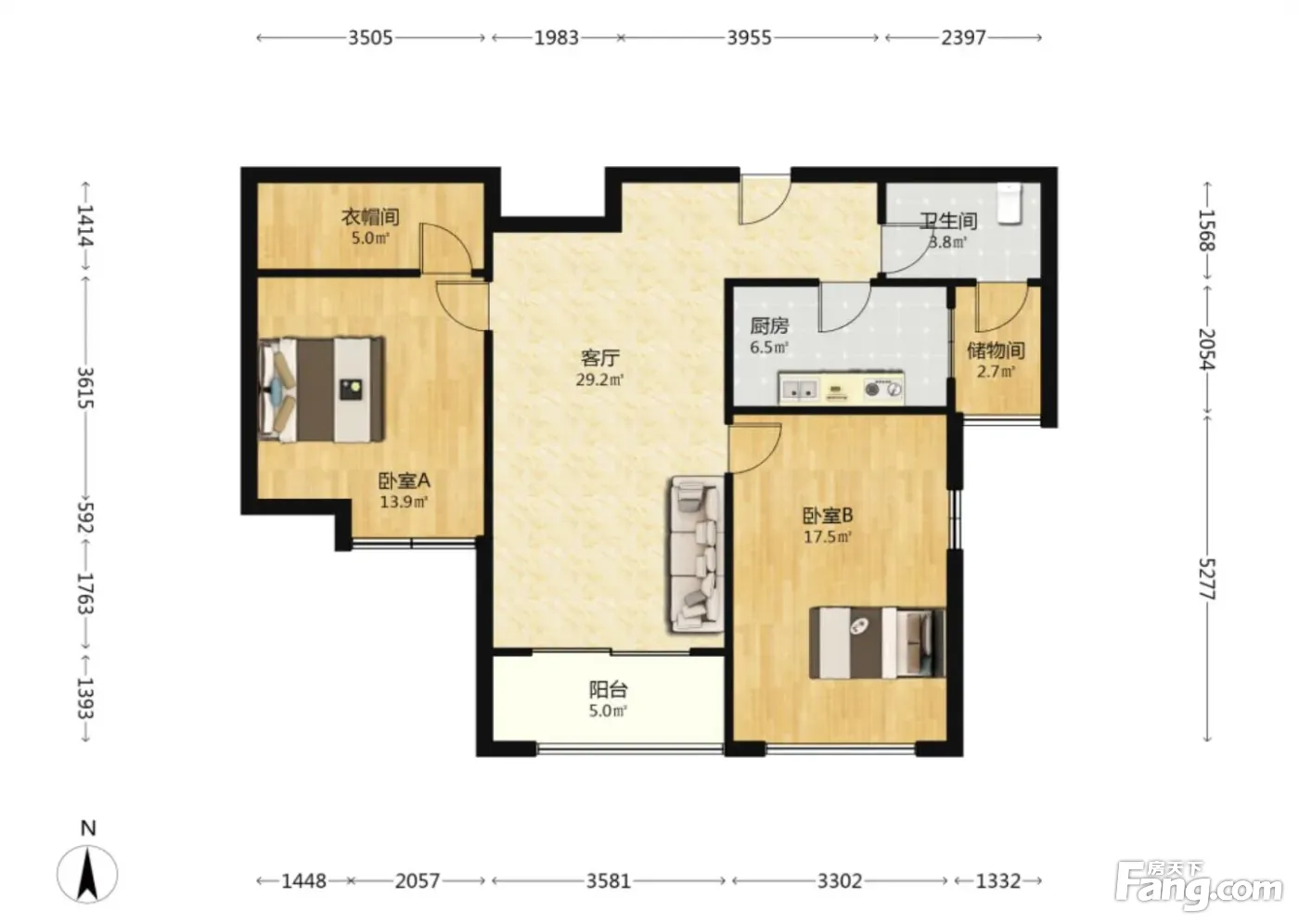 金海名园 2室1厅 南 北