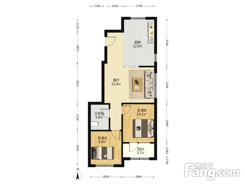 户型齐全,主打南北通透,客厅朝南,主卧朝南,卧室带阳台,双阳台三居
