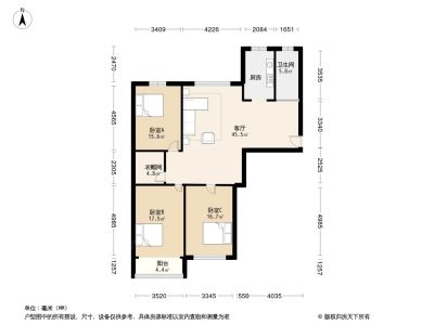 户型齐全,主打明厨,明卫,客厅朝南三居