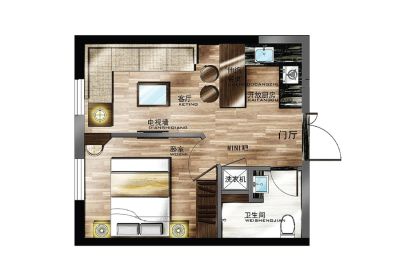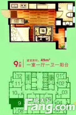 户型齐全,主打户型方正,开放厨房一居