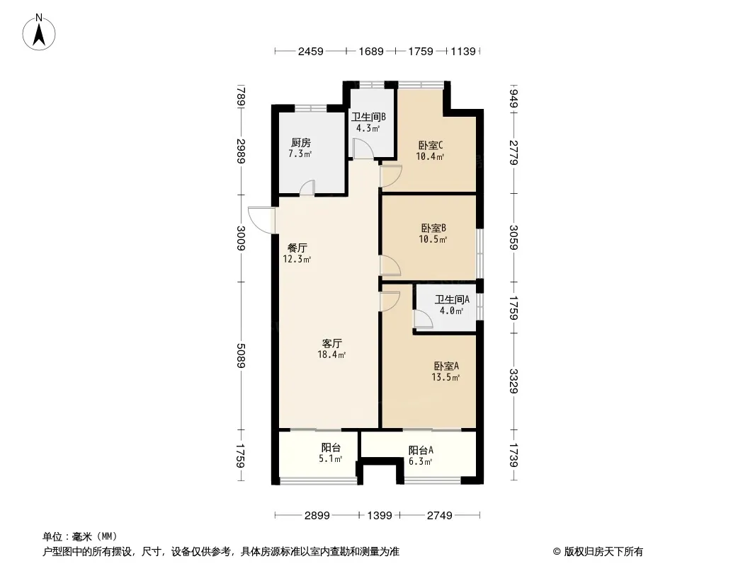 户型齐全,主打全明格局,动静分离三居