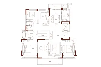户型齐全,主打全明格局,动静分离四居