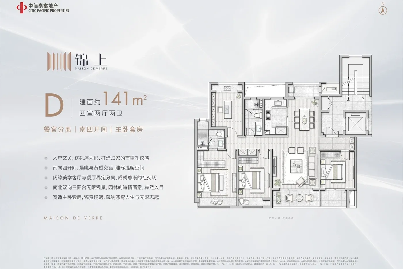 中信泰富锦上户型主要有125平-170平的全明格局,动静分离的四居 、92平-109平的全明格局,动静分离的三居 。