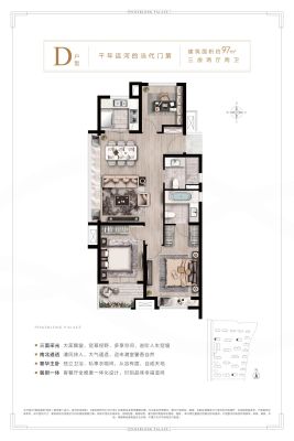 运河宝龙观邸户型主要有97平-125平的全明格局,动静分离的三居 、117平-144平的全明格局,动静分离的四居 。
