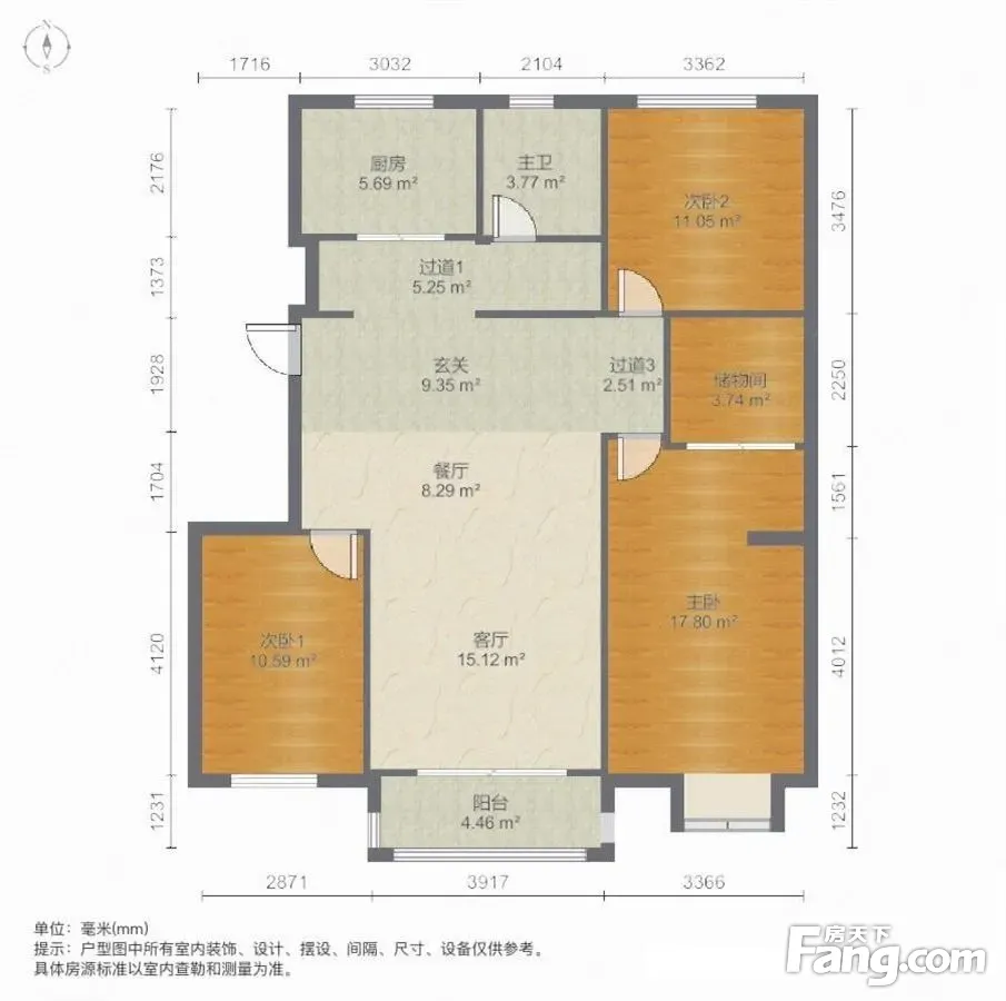 婚房!108个126平!三室南北通透飞机户 东方名城和园