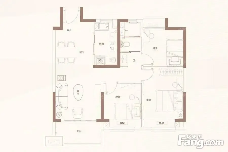 户型齐全,主打全明格局,动静分离三居