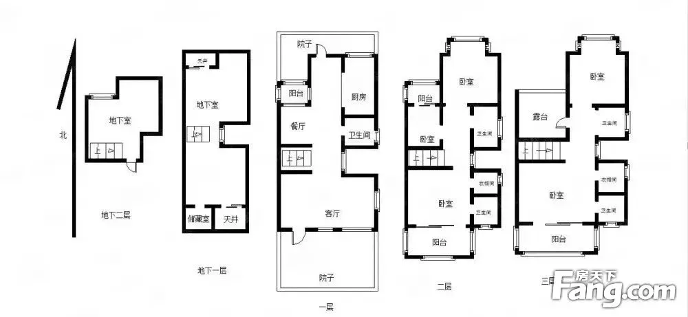 沿河风光,地下一层挑高5.8米 可做两层,地上三层 产权证共355平方,四面光,院子约500平