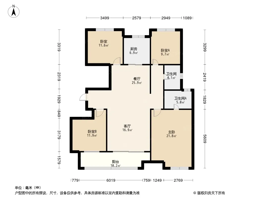 户型齐全,主打全明格局,动静分离四居