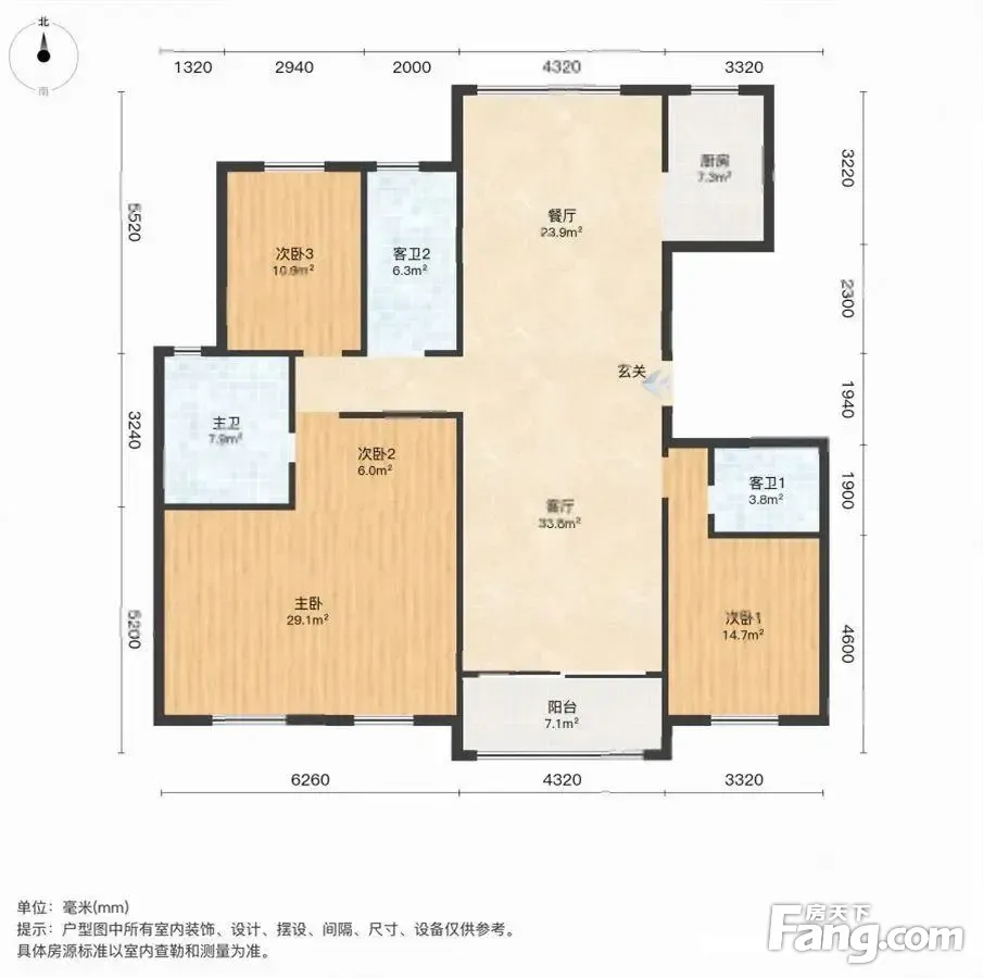 户型齐全,主打南北通透,户型方正三居
