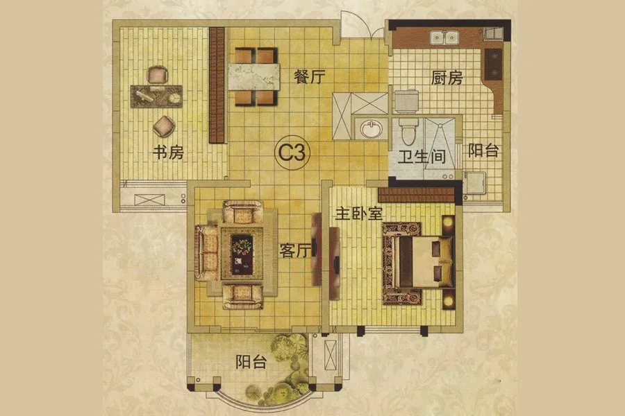 户型齐全,主打南北通透,飘窗三居