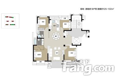 绿地唐樾府户型主要有125平-150平的全明格局,动静分离的四居 、100平-100平的全明格局,动静分离的三居 。