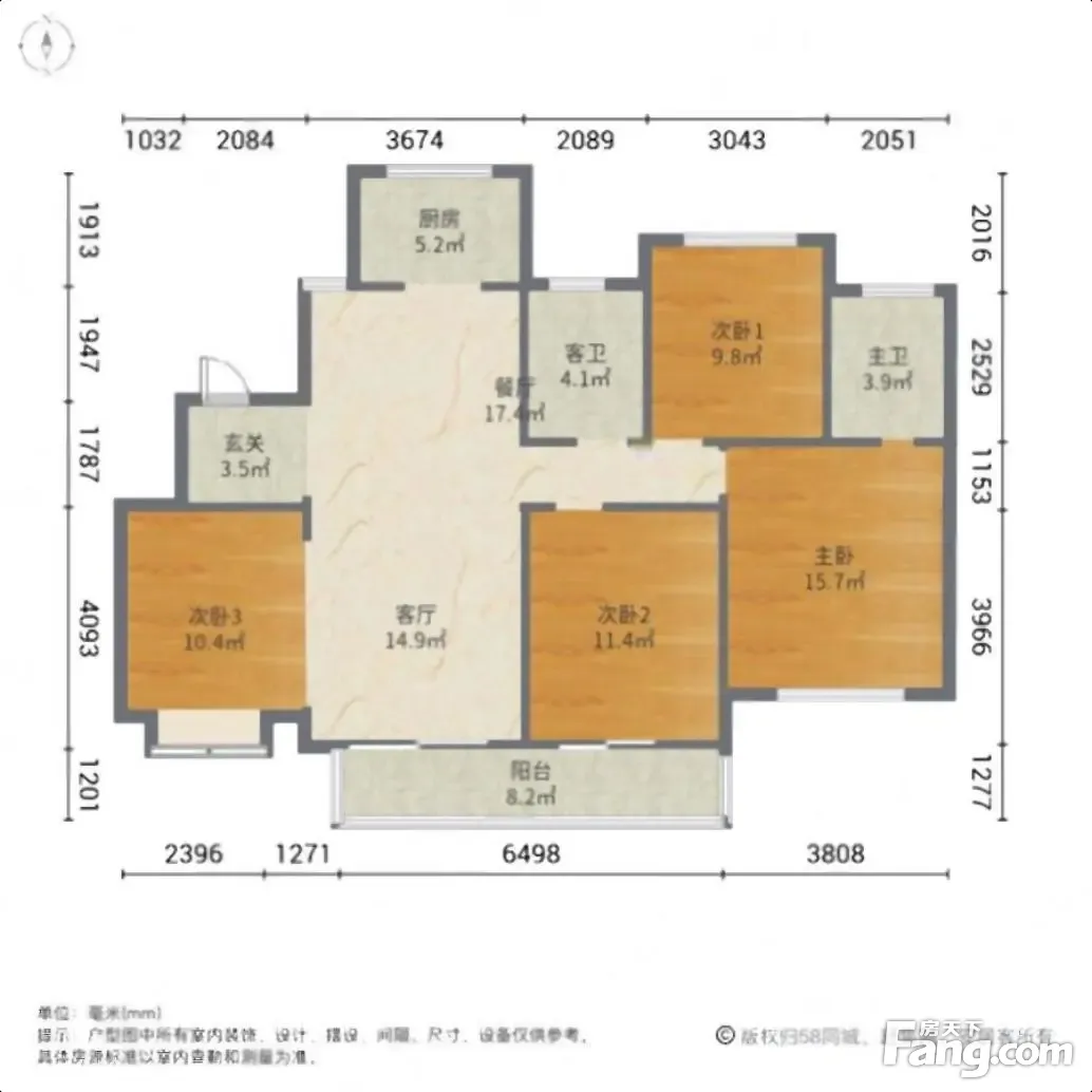 户型齐全,主打客厅朝南,主卧朝南四居