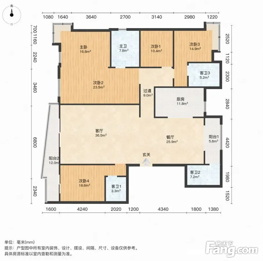 户型齐全,主打客厅朝南,主卧朝南四居