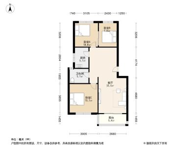 怡心园(张店区) 3室2厅 南 北