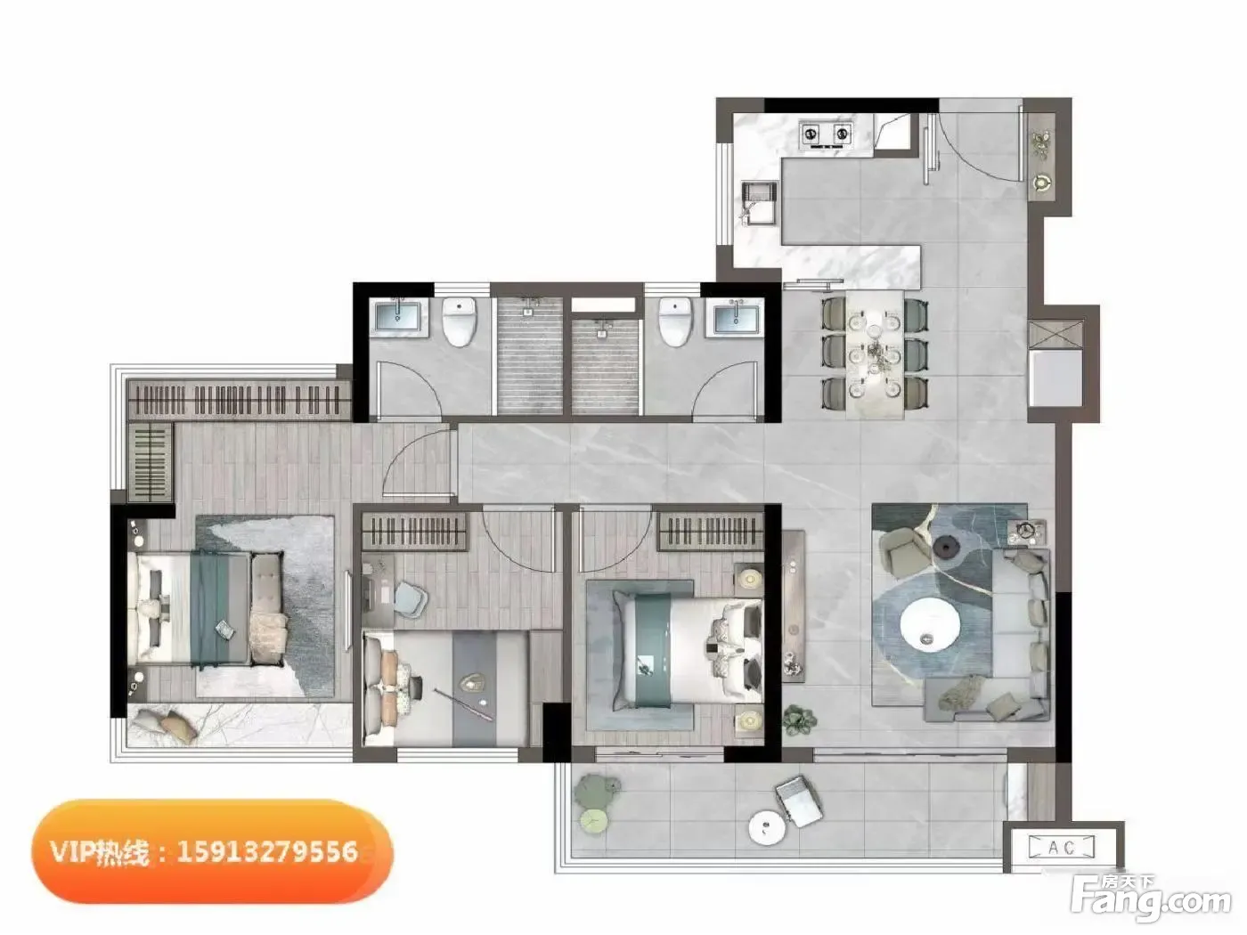 卖爆的户型!77平做3房1卫!没有浪费空间(正方深悦湾)