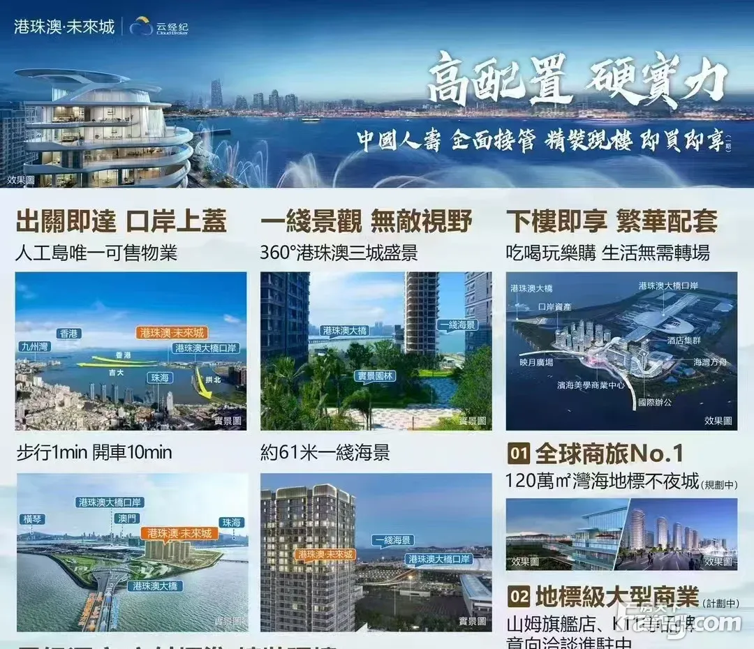 珠海「港珠澳未来城」 富人区一线海景 10分.钟享珠澳生活圈 口岸资产、TOU资回报高回报 总价85万起、全新精装公寓