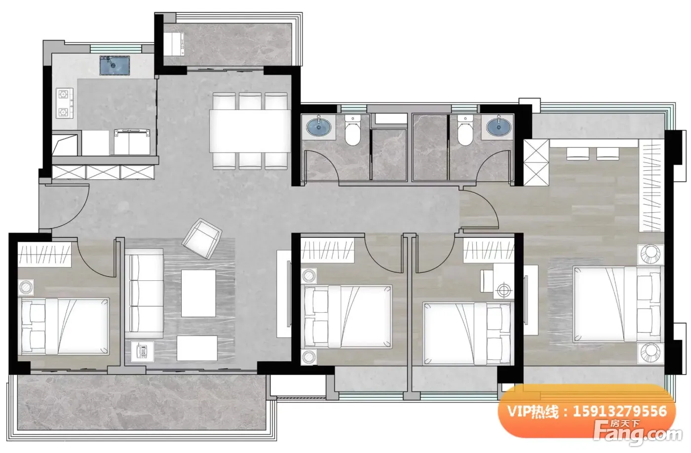 户型齐全,主打南北通透,全明格局,采光充足,双阳台四居