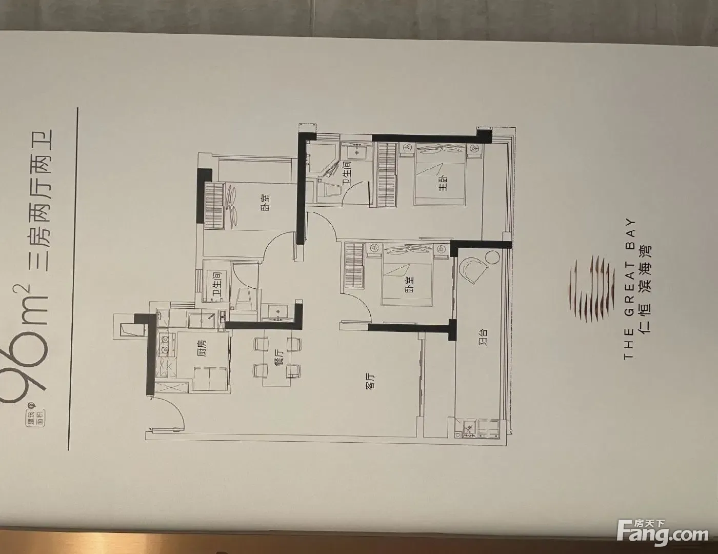 建面约96㎡ 南向高使用率三房 约6.2m宽幕阳台 | 270度转角飘窗 | 动静分明空间 | 全明厨房