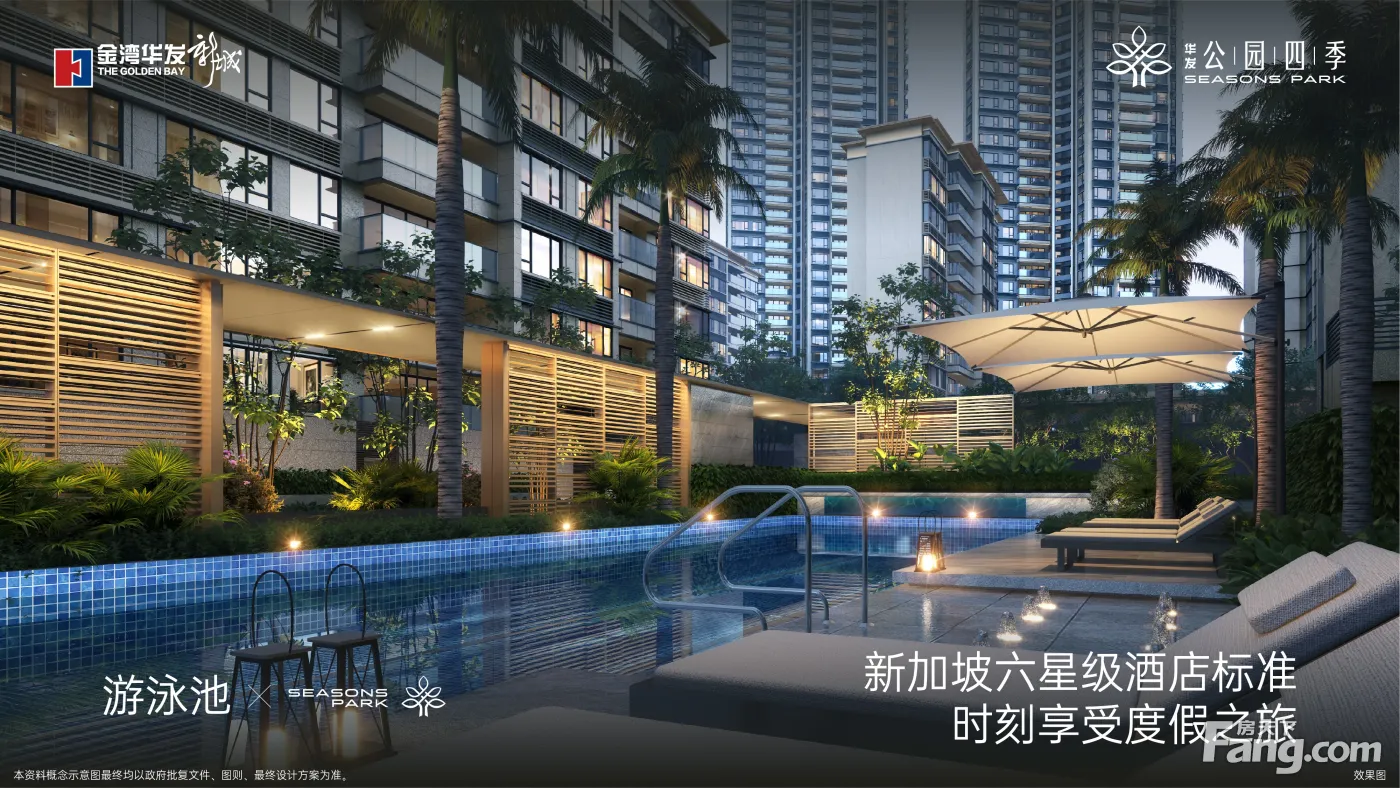 ◎新加坡JTL设计,度假风情园林 同步国际理念,以四层景观导入 打造功能齐全、场景丰富的多维景观 营造“愈繁华,愈静谧”摩登度假氛围感 ◎新加坡六星度假酒店同款泳池 30x8m度假风情泳池,黑金玫瑰仿石砖通铺 打造成人泳池、儿童泳池、浅水台 时刻享受度假之旅
