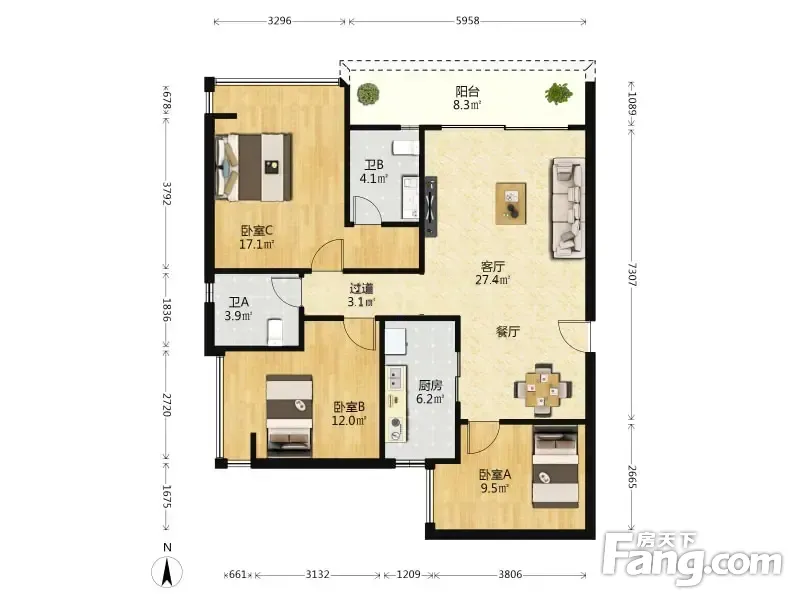 3室2厅1卫