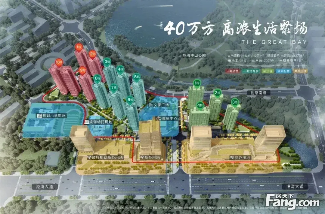 仁恒滨海湾位于珠海高新后环,港湾大道和创意南路,历史文化高地中山公园和未来珠江口西岸产业聚集发展区的深珠合作示范区,具备一线公园景与便捷交通。仁恒滨海湾项目坐拥约60万㎡一线中山公园景观,整体建筑面积约40万㎡,作为大型综合体项目,规划有人居、繁华商业、邻里中心、地标写字楼、文保公园等复合业态,齐聚市政单位、生活配套、娱乐旅游、商业中心等大型公共设施。项目还拥规划用地和规划用地,未来或将建设成为公立的和。