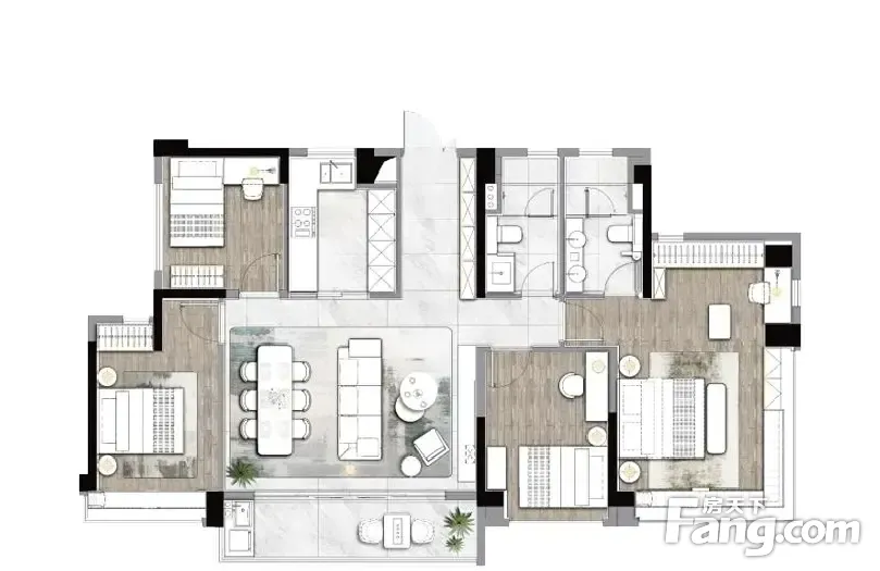 房屋拥有相对宽松的尺寸,布局通透,动静分离,设计豪华