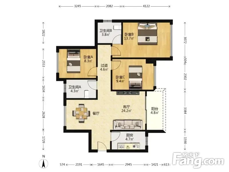 户型齐全,主打南北通透,全明格局三居