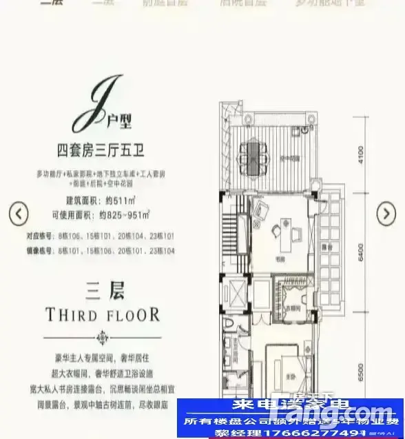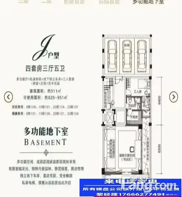 珍藏家族式别墅 湖心路产品 传世大宅 家传别墅 549㎡五房六卫+私家影院 地上三层地下二层(车库)