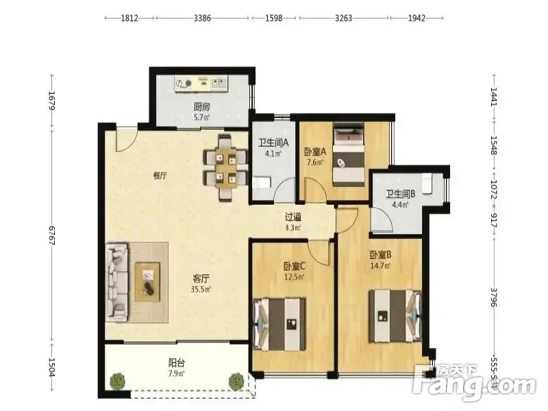 3室2厅1卫