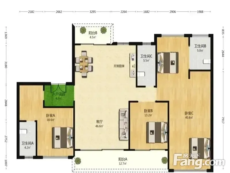 房屋拥有相对宽松的尺寸,布局通透,动静分离,设计豪华
