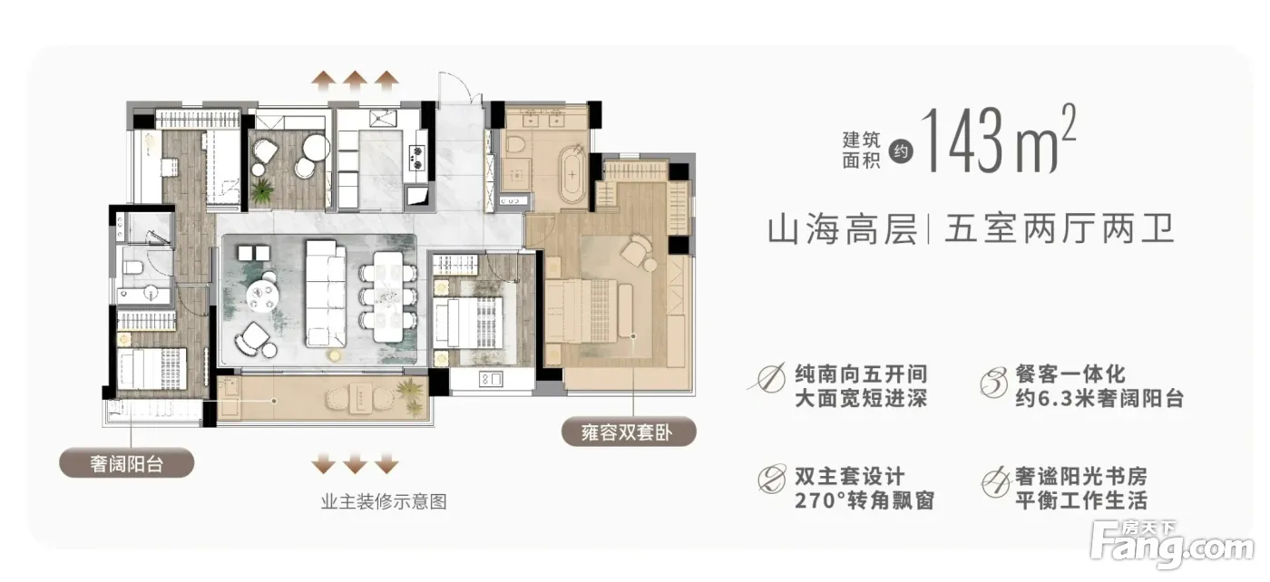1、以洋房产品建面约143㎡户型为例,在当下改善户型内卷的面积段,展示了强大的竞争力,亮点很足。 2、家庭人口结构变化带来住房需求的变化,多孩家庭对于四房的需求,逐渐成为刚性需求 3、洋房产品约143㎡户型,4房2厅3卫,南向双套房+三卫,全生命周期户型,适配家庭。 4、整个户型使用率强,多处飘窗全部赠送、阳台半赠送,赠率