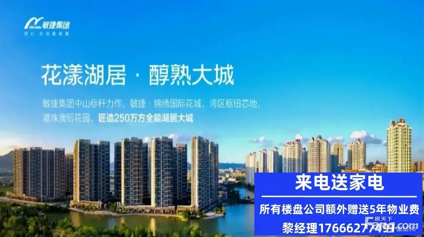 【锦绣国际花城】是百强房企敏捷集团打造的千亩醇熟湖景宜居标杆大城。项目坐落于中山市坦洲镇环洲北路9号,占地约1500亩,共分五期开发,历经11年现已开发至第五期,洋房、商业公寓、商铺产品一应俱全。项目拥有中山、珠海区域的300亩原生态湖景资源4公里的环湖跑道,另外项目设置公交总站,岐关巴士(A线)珠海吉大、香洲、拱北;项目拥有区域内的三所公立 和两所公立 ;小区内有7000㎡康体会所拥有室内外恒温双泳池以及社区运动公园,运动公园里面配备运动设施、篮球场以及羽毛球场, 身材塑造必不可少。现社区已有超万户业主入住, 品牌物业服务,社区居住氛围浓厚。