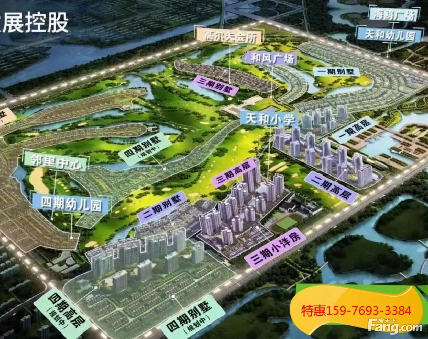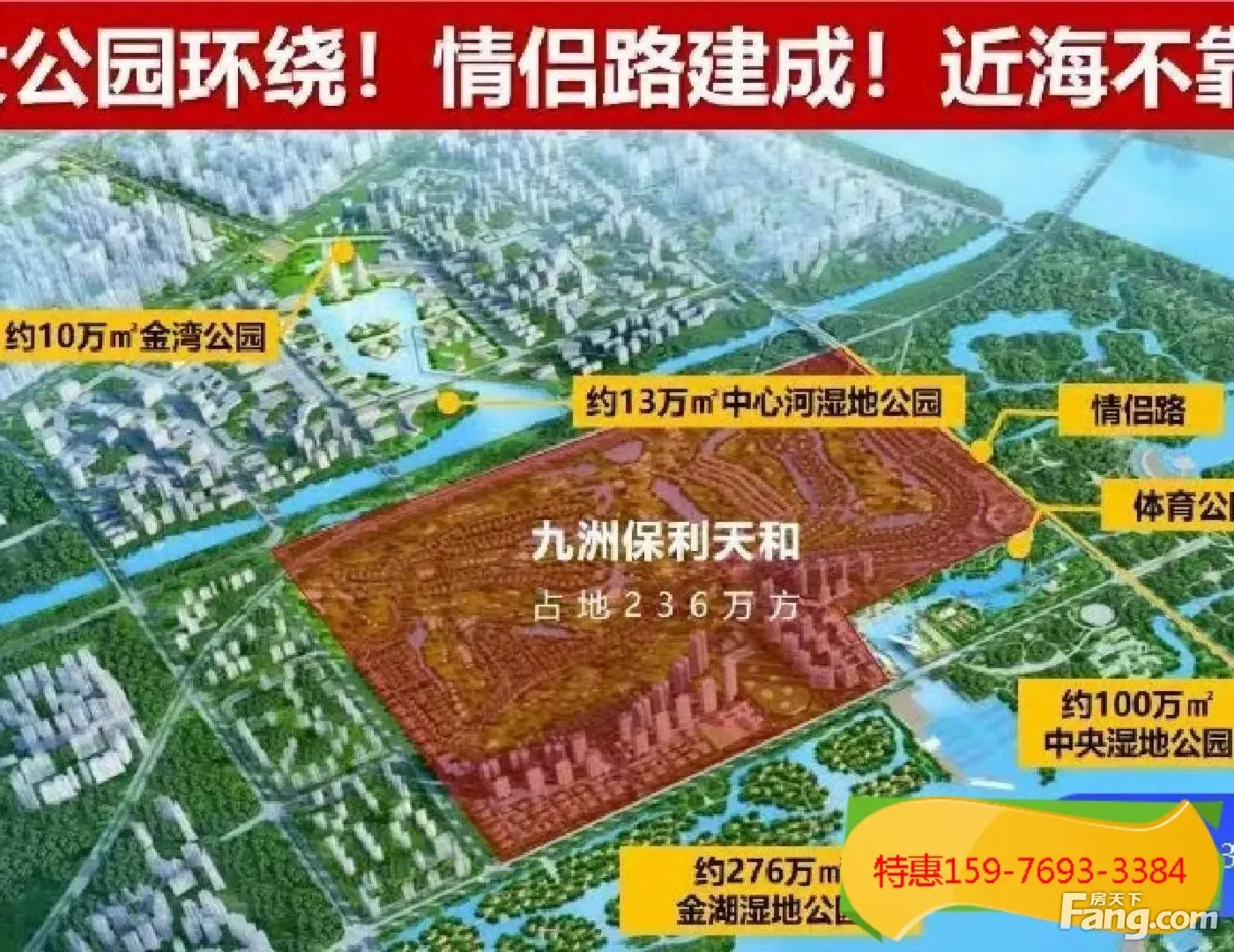 抄底钜惠!珠海金湾(九洲保利天和别墅)三面环湖四面果岭景观