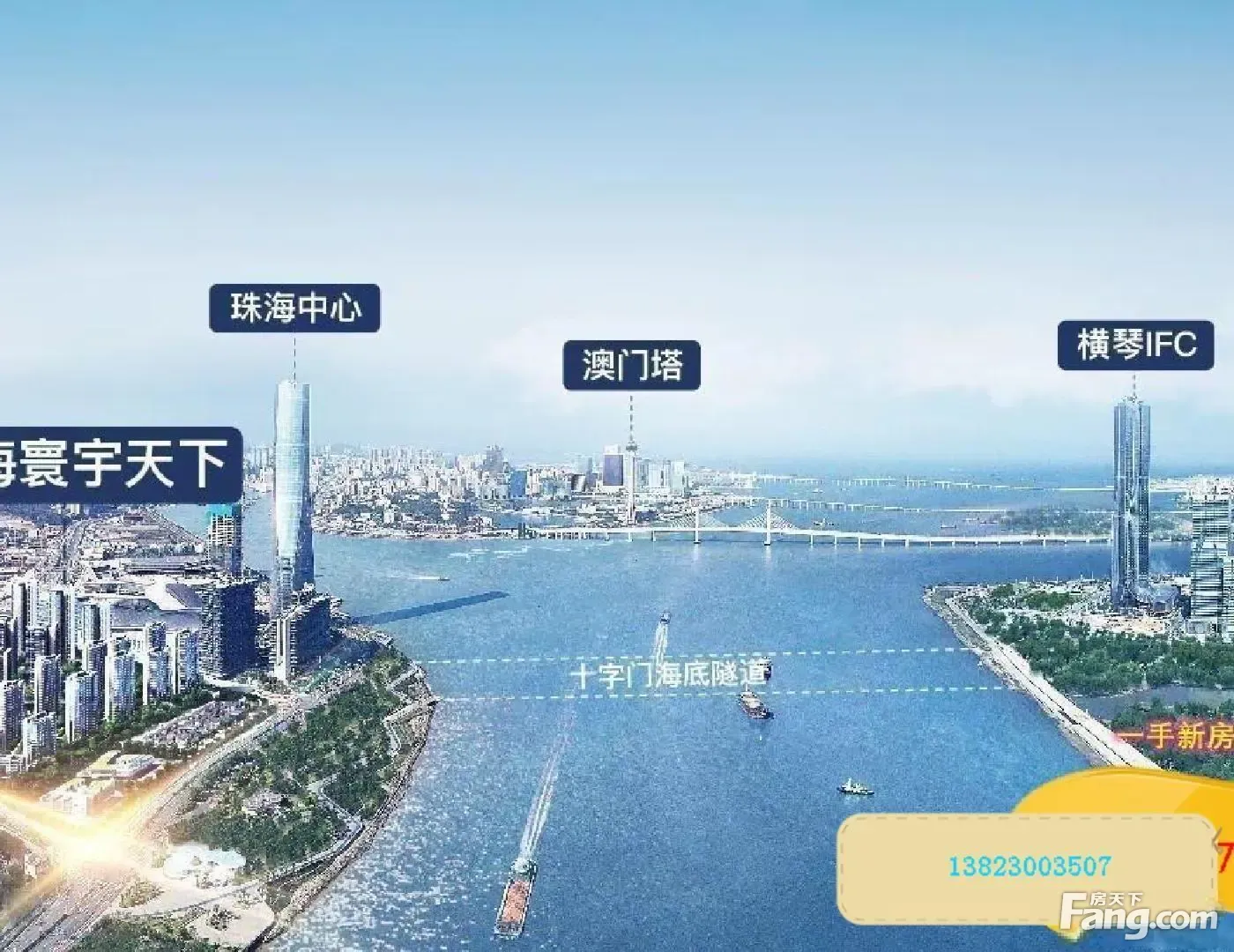 一、【项目亮点】强区域: 1、项目位于澳门&横琴深合区旁,斥资3600亿打造的保十琴一体化十字门商务区内,集国际商务、配套、居住于一体,定位为珠海新中心。 2、地段:与横琴直线距离527米,与澳门直线距离1.4公里,左手澳门、右手横琴,复合双区利好,承接琴澳人口、经济等外溢资源直接的区域 3、景观:270一线无遮挡海景,南向看海,并同时观赏澳门烟花景、横琴繁华城景、自然生态山景,珠海仅有。? 4、大盘:主城罕见体量地块,中海精工+地段+景观,打造45万㎡的新一代国际社区。? 5、醇熟配套:自带商业街区,配套环伺,10所、7公里范围3大医院,3大生态公园,下楼情侣路,畅享都会繁华生活。 6、立体交通:1城轨,2大桥,2隧道,3机场,4口岸,湾区级交通枢纽,1站城轨到横琴,30通港澳,24通关澳门。 7、保障:精工中海,遍布全球80余个城市,开发项目600+,累计国内外建筑大奖近100项,专注中住宅产品。 8、中海物业:中国首批一级资质物业管理企业,全球400万业主的共同选择。 9、大师作品:中海寰宇天下系,遵循核心地段、醇熟配套、稀有景观、产品四大标准打造,天生就是资产??
