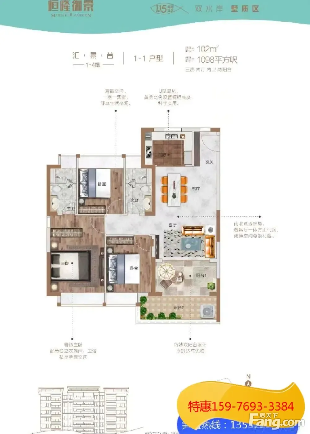 特惠劲减二成首付22万起!斗门(恒隆御景花园)精装板楼河景房