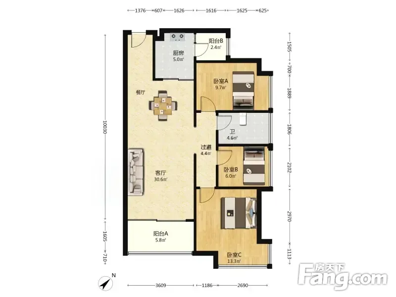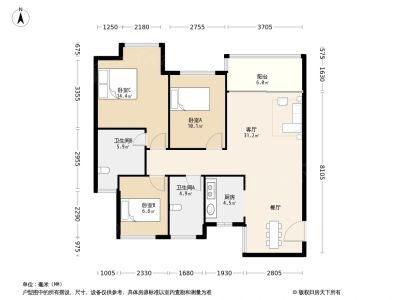 蔚蓝美域 3室2厅 93.84平