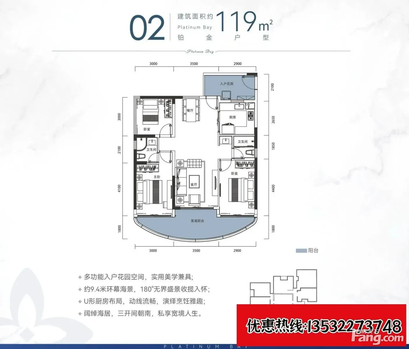 【人居环境】享8000㎡水系湖景、18万㎡滨海主题园林,坐拥1.5公里阳光海岸线, 6万㎡滨海风情旗舰商·业;自配静云系列謃级精榀酒店; 海上影城让你不出小区即看磅礴大片;6000㎡髙端瞰海业主活动中·心 【自然环境】拥1.5公里阳光海岸线,享200万平米原生山脉天然氧吧 邻5000公顷红树林湿地,壮美自然,生态人居