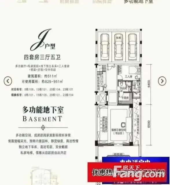 联排别墅,精装修 总共5层,地下2层,地上3层 负一层,花园,餐厅,厨房 负二层,车库,保姆套房,桑拿房,客厅,酒柜 1楼,客厅 2楼,3个客房 3楼,主卧,书房,大露台