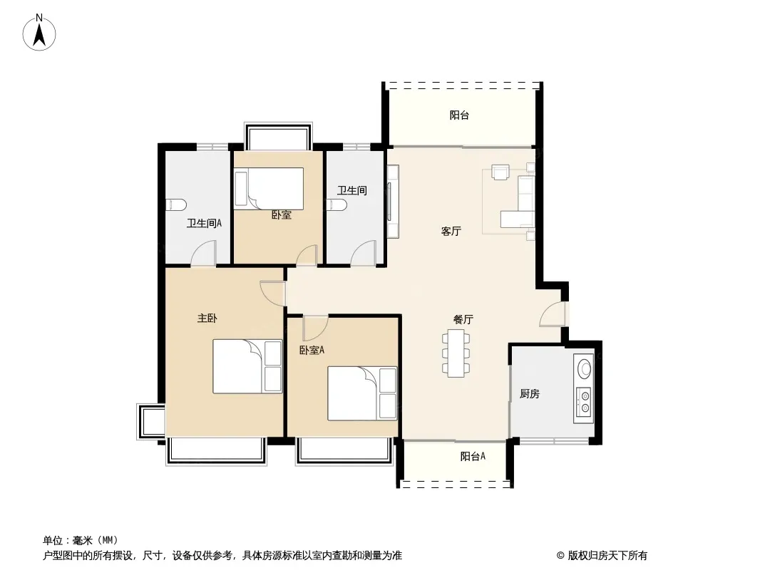 户型齐全,主打户型方正,采光充足三居