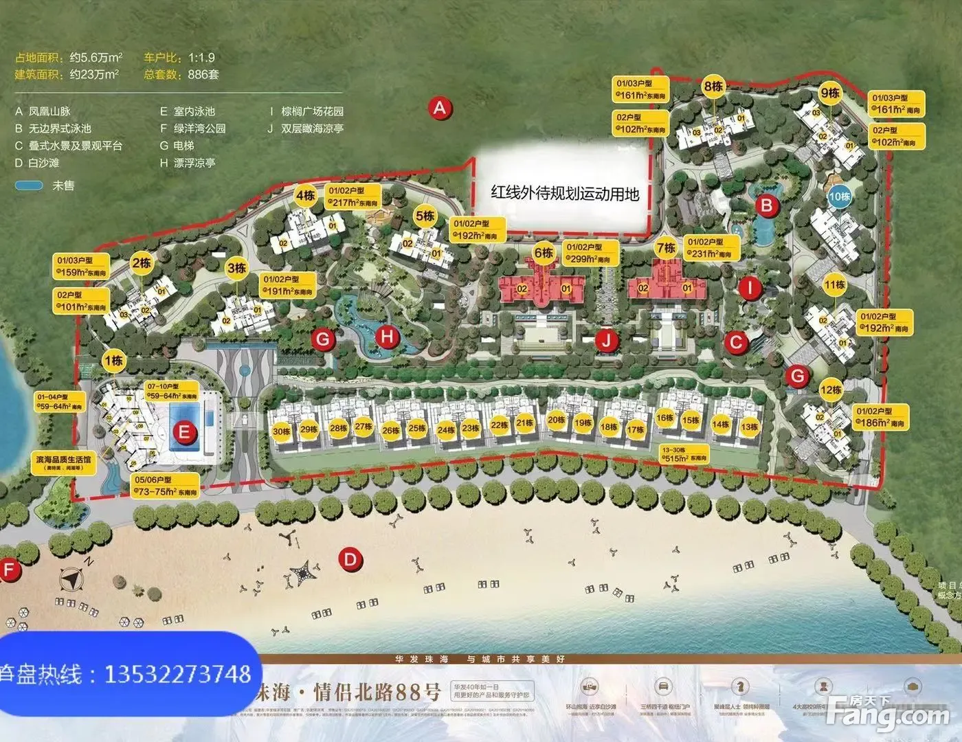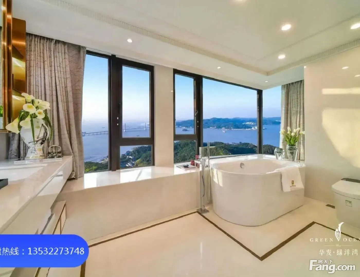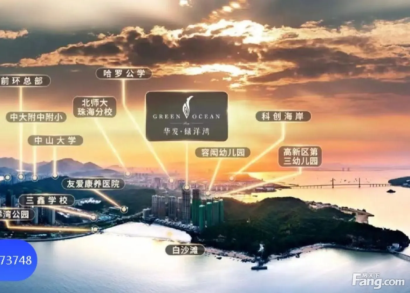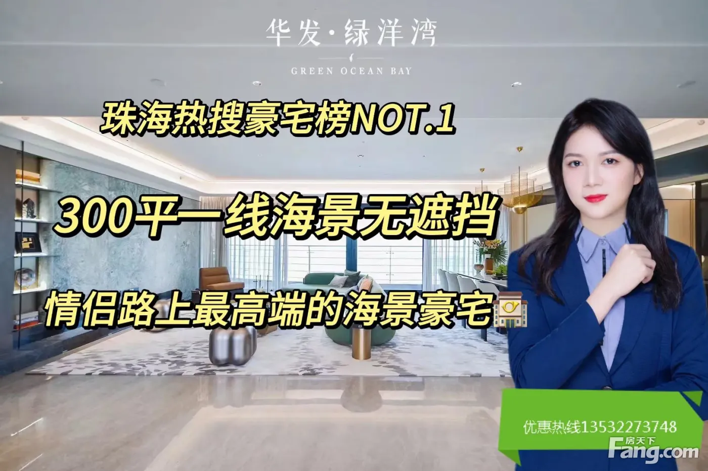 1、华发绿洋湾位于珠海唐家湾畔,占地约5.6万㎡,背靠凤凰山,南向伶仃洋,一线亲海豪宅,享近5万㎡浪漫白沙滩! 2、一梯两户及两梯两户,户户朝南,面面向海,南北通透, 3、在售户型:约300㎡四房三厅三卫三阳台,海景端头位可享270度全海景客厅开间3.2-3.5米环幕视野 4、独享180山海湾全景观环抱的海景风光大面积通体落地窗全景环绕,山海入室消防系统,门隐蔽式设计私密性、安全性达酒店式标准