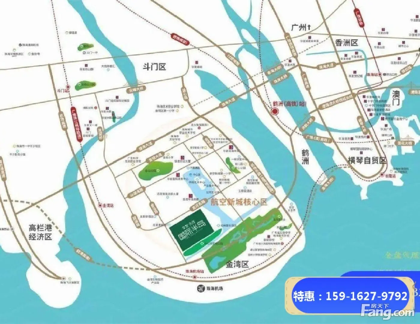 【一】:三桥两轨一一机场,无缝通达 【二】:雄踞洪鹤大桥桥头堡,接驳港珠澳大桥延长线,瞬达港澳 【三】:广东省人民医院珠海医院、吉林珠海医院等三 甲级医院护航健康 【四】:金湾6大中心+华发商都,金湾宝龙城商 业,享百亿级配套 【五】:云集:航空新城 、航空新城 、航空新城中、珠海市中、金湾