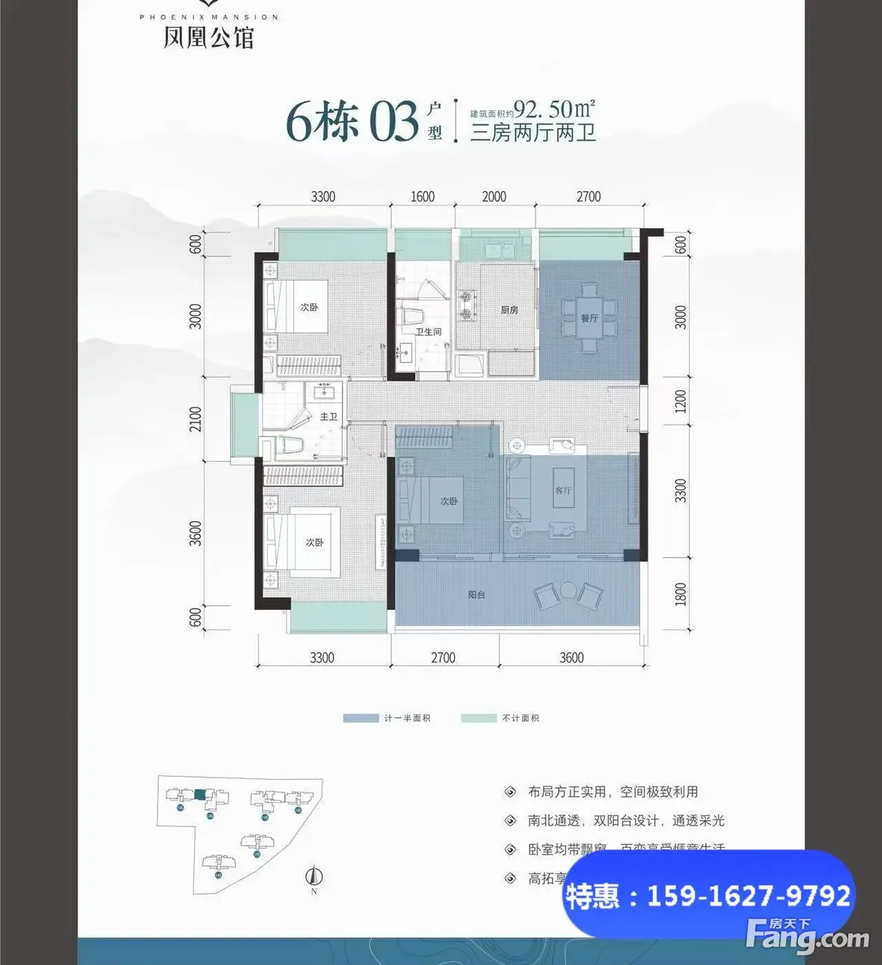 爆笋!精装山景现房(凤凰公馆)92平3房大阳台/单价2.1万