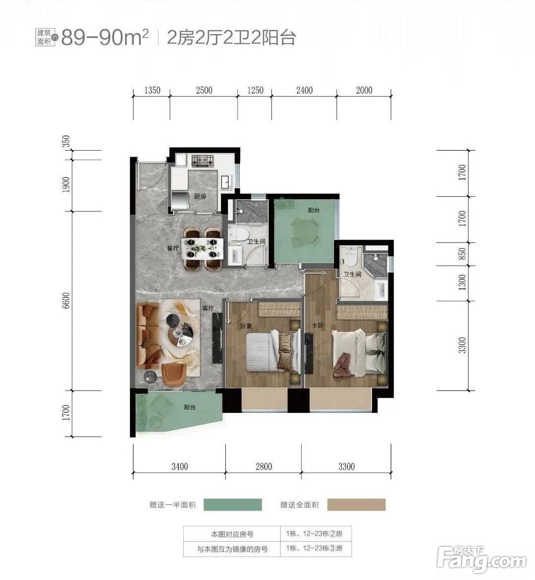 金湾华发新城·华发天茂国际半岛户型主要有89平-97平的客厅朝南,主卧朝南的二居 、108平-126平的客厅朝南,主卧朝南的三居 。
