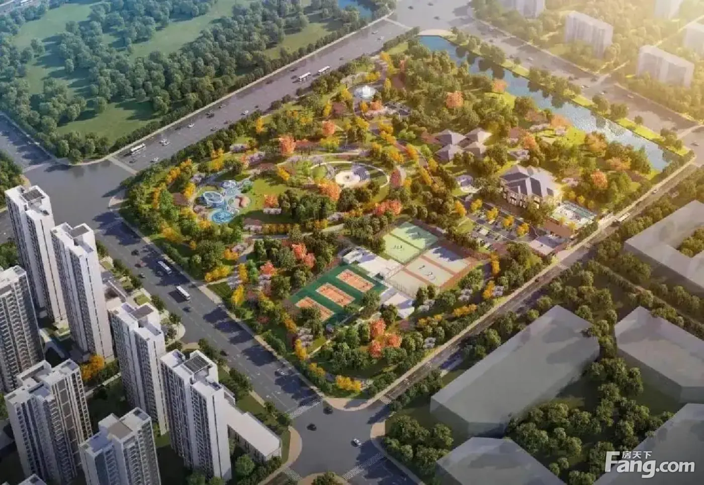 小区自身配备2个,共4000平方(一个自营1559平方,一个移交正府2400平方) 街区配套1万平方(含113平方)3592平方二级邻里 (包含500平方肉菜市场)水畔区生活一步到位, 轻松享受自然生态,项目正处黄杨河一河两岸”规划,云峰公园,尖峰山森林公园, 500亩福河湿地公司,幸福河,黄杨河,友谊河,水系环绕。