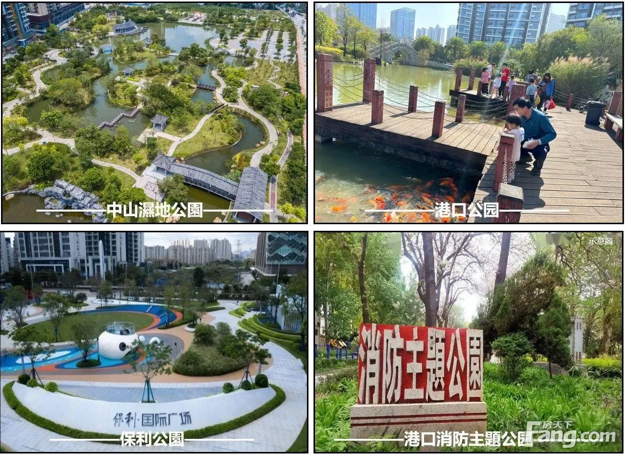 中::港口中心、民主、华师附 :大南、港口、华师附、华侨 :港口中心、美景托儿所、民主、育苗托儿所 商场:壹加壹、红星美凯龙、保利国际广场 银行:农业、广发、农商行 医院:港口医院 其他:美景市场、港口市场、大南市场