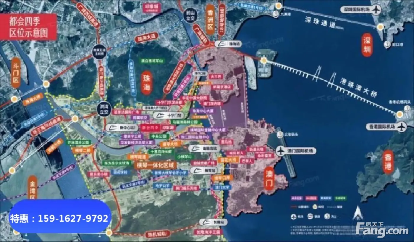 1.项目位于珠海横琴一体化区域新中芯核心位置,一桥连港澳一轨通湾区,项目横琴口岸仅3.4公里,口岸全天开放,可以通关过澳门;项目港珠澳大桥支线落脚点,开车即可香港,项目约2.km处就设有城轨站,直通湾区11座核心城市. 2.比肩纽约110公顷中.央公园:项目南侧600米为中.央公园(规划中),可以说楼下就是天然氧吧,这个公园的面积相当于5个北京鸟巢,157个足球场。 3.项目自带4.5万商.业-印象城,是印力商.业旗下高.端区域购物中.心,商.业招商对标的是山姆店、COSTCO,宜家购物中.心等国际商.业品.牌。